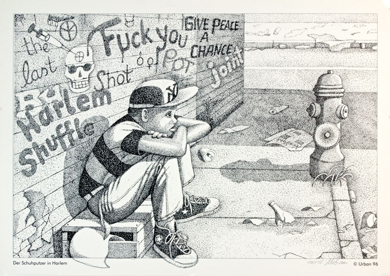 Die Technik der Rapidographie ist ähnlich wie bei einer Federzeichnung. Allerdings viel aufwändiger, weil nur mit Punkten gearbeitet wird, um das Bild effektvoller und detaillierter zu gestalten.